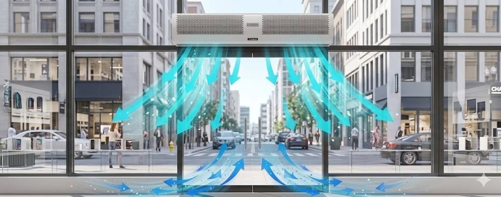 חנויות ומרכזי קניות: שמירה על דלתות פתוחות המזמינות לקוחות להיכנס, תוך מניעת אובדן אוויר ממוזג ושמירה על קרירות בחלל המכירה.